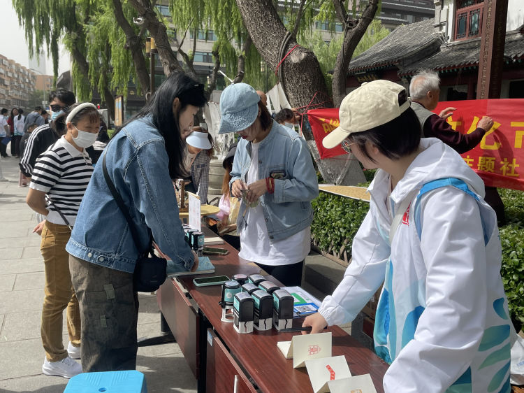 5月19日是第34个全国助残日,为了让社会各界爱心人士关注关心关爱残疾人,更好的发扬助残精神,5月11日,“‘益路同心 情暖县西'助残义集”开始啦,大明湖街道综治中心主任金勇、社会事务科负责人韩芸助力开市。社区书记郭亚楠书记带队社区工作人员扛起“卖货主播”的大旗,积极宣传着书画名家的背景、社区文创产品的创作故事、社区公益事业规划等,吸引众多游客、居民、志愿者驻足奉献爱心、购买工艺品留作纪念。