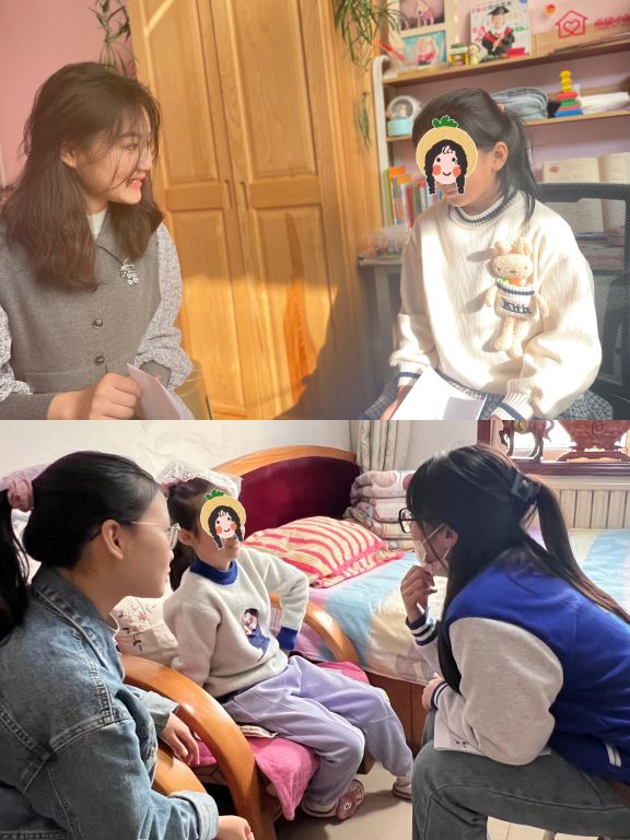 “姐姐你好,我叫小然(化名)”、“小然你好,你可以叫我末末姐姐~”。11月6日-11日,社工带着5名济南大学的志愿者同学走进了儿童家中,同时也开启了山东大学志愿者同学与儿童的线上会面通道。9对“童伴”小分队在一声声“你好”中初步认识。为打破初次相见的“冰点”,社工首先引导儿童与志愿者进行了“说说我自己”破冰环节,通过“你来比划我来猜”迅速拉近儿童与志愿者的距离。“这个是长颈鹿!对不对呀”,小然比划出了自己最喜欢的动物,志愿者也立马做出了回答...几轮比划过后,活动氛围渐入佳境,大家也通过这种轻松的方式互相了解了对方。
