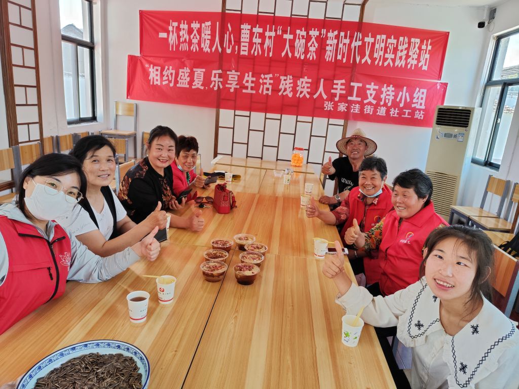 2023年6月30日,张家洼街道社工站在曹东村组织开展“相约盛夏,乐享生活”残疾人手工支持小组第三节,本节主要带领组员学习手工制作冰粉。