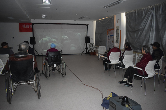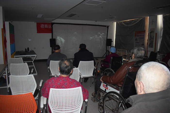 为了提高住养老人的生活质量,增加生活的趣味性。2月21日下午,众诚悦银龄养老社工项目组链接省广电资源,为住养老人在福利中心三楼老年大学活动室放映电影《四渡赤水》。