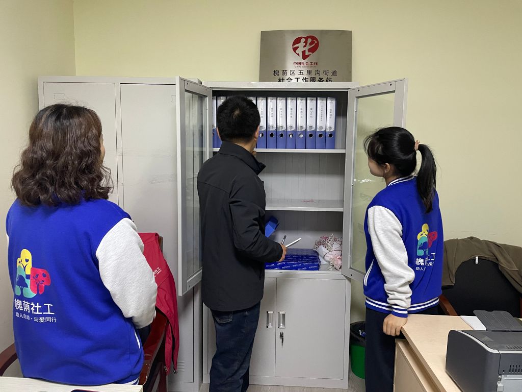 苏海老师指导社工站档案管理工作