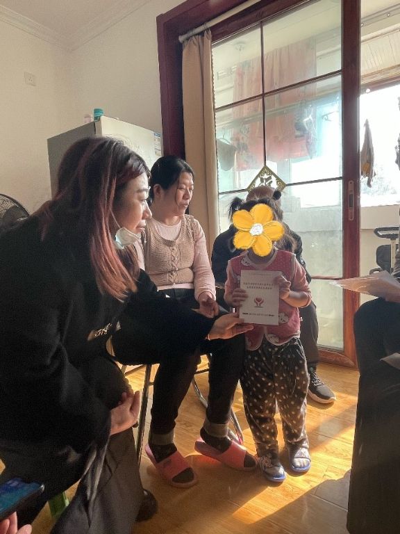 在困境儿童家中,社工详细询问了儿童的生活情况、学习情况等,了解到孩子的父母均属于重残人员,靠父亲在北京打零工维持生活。给予他们精神上的慰藉和鼓励,为其家庭送去希望,让他们感受到党和社会的关心和关爱。