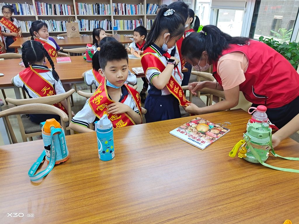 活动最后,社工为小朋友们佩戴了志愿者绶带,进行图书整理,体验了一把小小图书管理员。