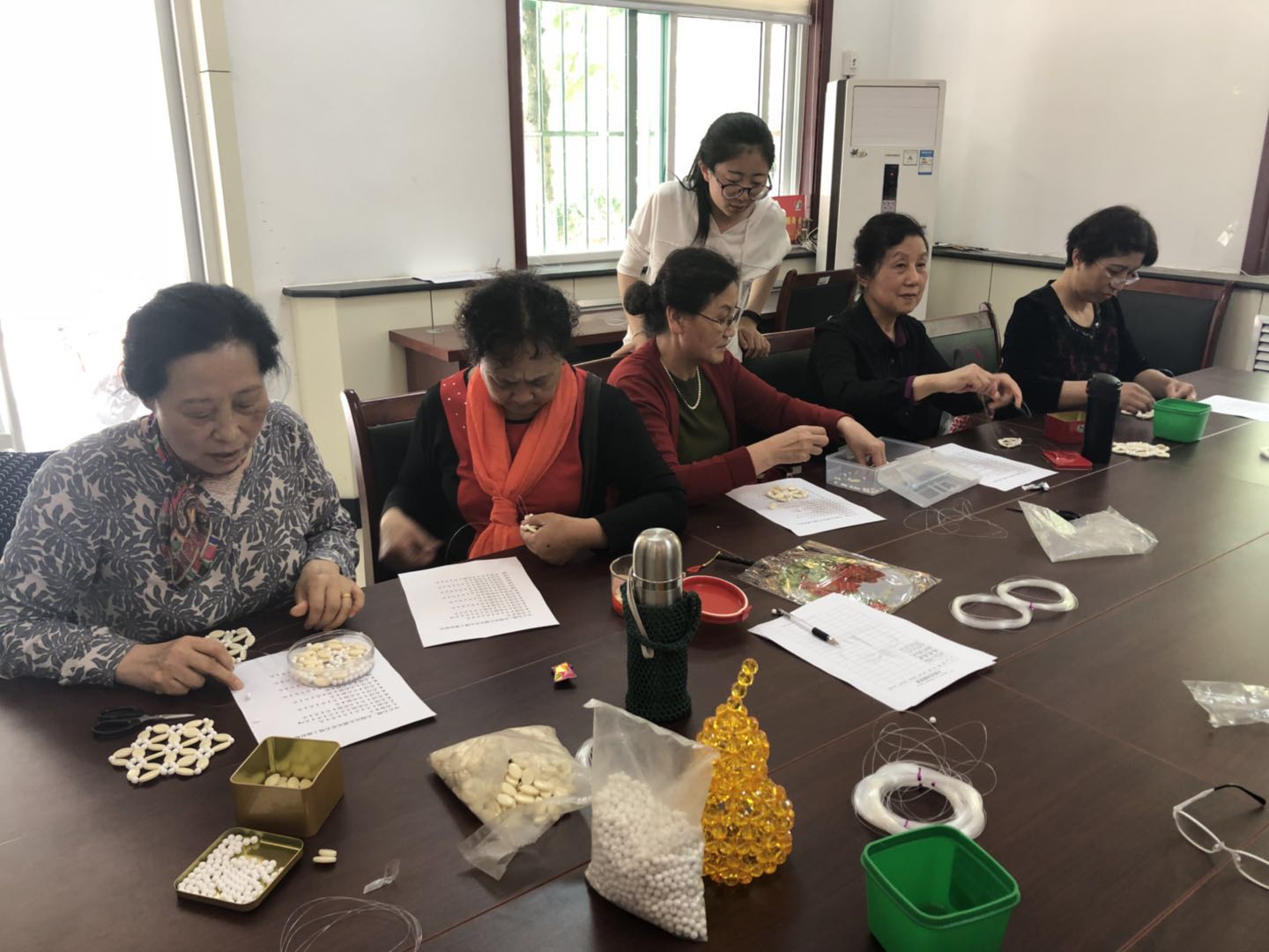二七新村街道办事处建南社区为了丰富社区老年居民的业余生活, 5月8日下午,开展了“手工串珠巧手生活”学习小组第一节课程。
