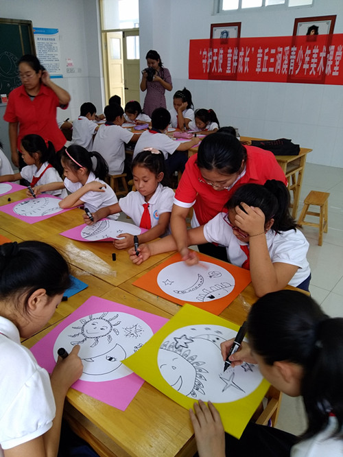 近日,章丘三涧小学第二场美术艺术课开课了。此次活动是“守护天使·童伴成长”章丘项目组专门为缺少美术老师的孩子们组织的的系列美术课堂。