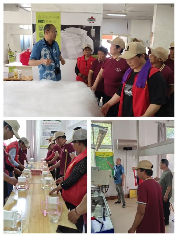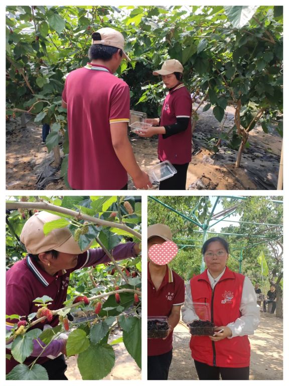 活动伊始,社工和志愿者们精心布置活动现场,共同为残疾人士提供安全、温馨的的活动场地。社工陪同残疾人士参加户外活动,和他们一起采摘桑葚,让他们感受到采摘带来的快乐;带领他们观看蚕丝的加工制作,共同领略“蚕文化”的魅力。
