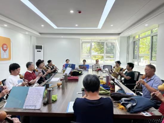 课堂中,老师耐心地从最基本的吹奏气息、指法、音阶等技法教起,由浅入深慢慢引导学员。每个学员都紧跟老师的指导,认真学习、反复练习,通过老师的指导,尝试着吹奏一些简单的乐曲,现场充满了欢乐的气氛。“我退休了,想学习演奏葫芦丝这种乐器。之前像我们这种零基础的中老年人,很难找到合适的地方学习,现在好了,在家门口的社区里就可以学习。”王阿姨开心的说道。