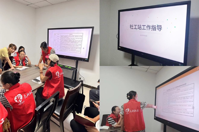 首先,张老师对社工站日常工作进行了详细的了解和评估。着重强调了社工工作评估标准的重要性,在数据资料的完备性、规范性方面提出了宝贵的建议。郭老师比较关注社工站工作中需要的各种支持是否到位,并与站点社工拉齐了各工作完成的时间节点。当我们提出了一些工作中的问题时,谢老师更是亲自讲解案例,把她在工作中的心得经验分享给了大家。以方便我们后期开展工作时可以更快的上手。