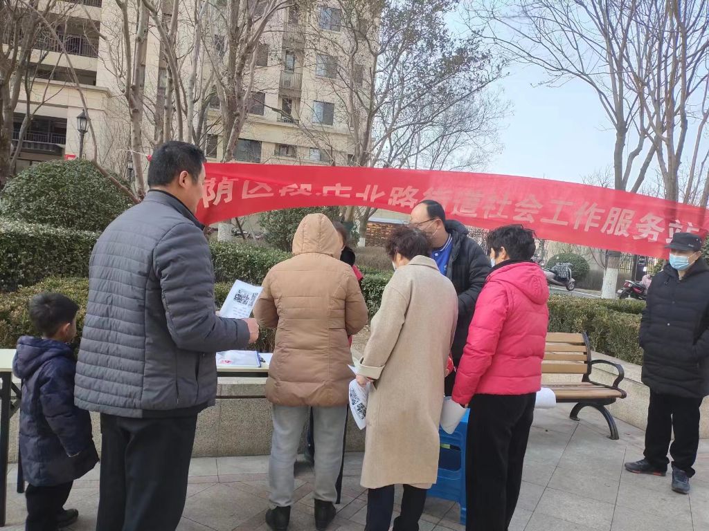 槐荫区段店北路街道社工站自迁至新站点财富壹号花园社区后,因疫情原因一直未能开展外展宣传活动。目前疫情趋于稳定,正值初春万物复苏之际,为了提高社工站在辖区的知晓度,扩大社工专业服务的影响力,2月17日上午,槐荫区段店北路街道社工站在财富壹号花园一期广场开展“社区+社工 服务在身边”社区外展宣传主题系列活动。