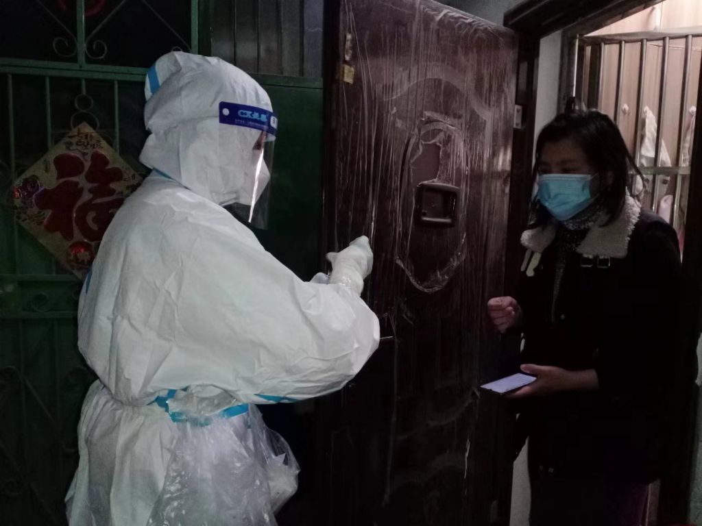 在统一调度下,社工与医护人员组成两人入户采样小分队,按照“一户一管”或“单人单管”的核酸检测要求,为居家隔离人员进行核酸采样工作。入户采样开始前,社工对所分配任务进行优化分解,规划入户路线,明确与医护人员的分工;在采样时,对居家隔离人员进行身份信息核对、咽拭子采集、酒精消毒,以最短时间完成采样工作,整个过程有条不紊,确保了能在规定的送检时间前完成居家隔离人员的核酸采样工作。