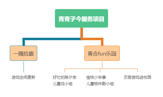在新的项目周期内“青青子今”服务项目将进行精简和更新,以空间营造和历奇游戏为切入点,打造青合“fun”乐园以及“一隅拾趣”两大服务板块,并且通过社工站所输送服务活动联动空间和历奇游戏。新项目周期的“青青子今”服务项目将紧抓游戏这一核心思路,采用“小组+游戏+赋能”的模式,小组是手段,游戏是形式,赋能是成效。