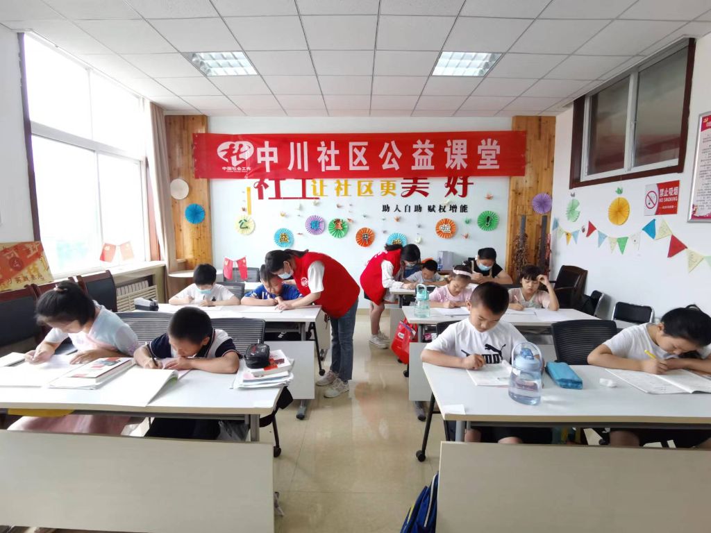 为了解决流动儿童、双职工等家庭暑期子女“无人看护”问题,推动儿童服务向纵深发展,文昌社工站联合中川社区、恒大绿洲第二社区开设了“暑期公益课堂”。
