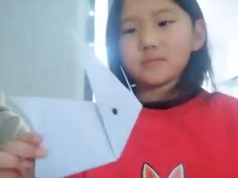 儿童向社工展示折纸作品