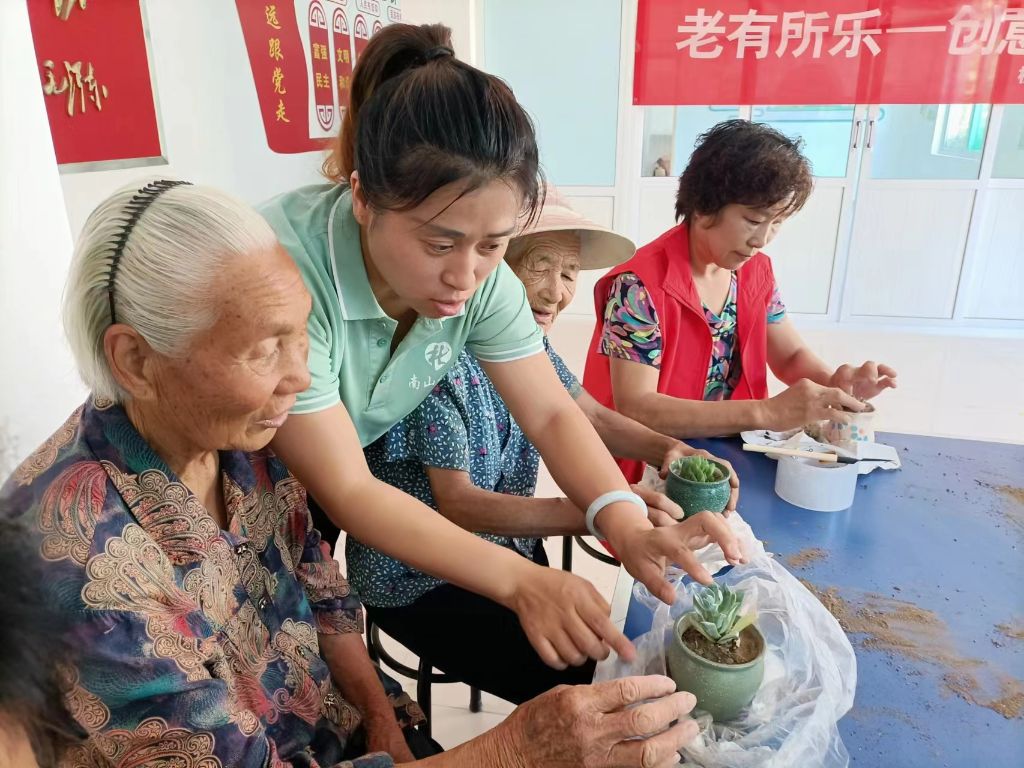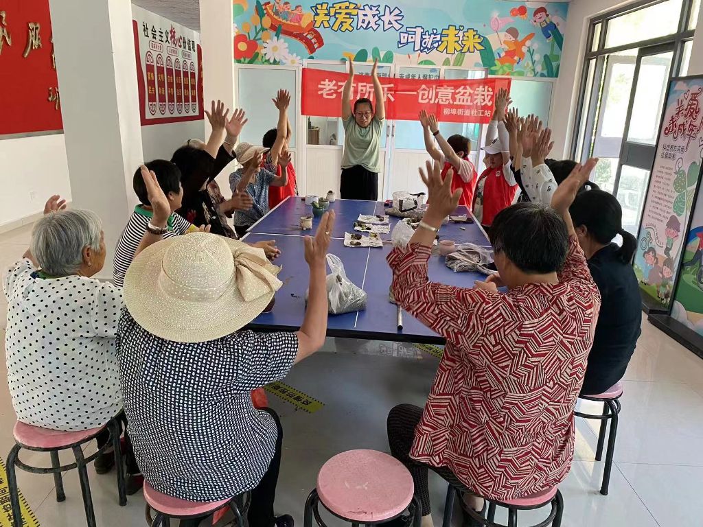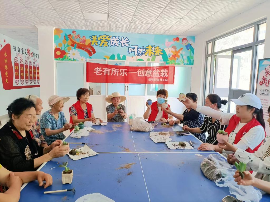为帮助老人舒缓情绪,放松心情,增强老人动手能力,丰富社区中老年人的精神文化生活,让老年人老有所乐。7月5日,柳埠街道社工站在柳东村委开展了情系乐龄,乐享夕阳——独居空巢老人心灵守望小组活动第二节:老有所乐-创意盆栽园艺盆栽活动,此次活动共有13位老年人参与。
