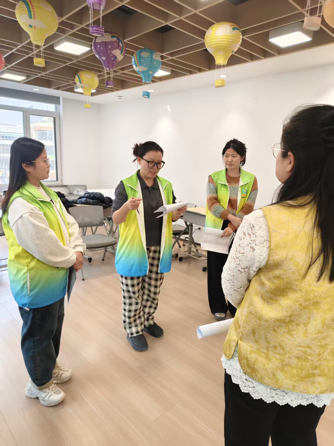 随后,张晴老师引导社工结合自身服务经验,围绕不同服务人群(老年人、儿童等)的需求与特点,筛选适配的破冰游戏并优化流程。社工带领其余人员开展暖场互动,在实践中检验方法、打磨技巧,快速打破团队隔阂、激活现场氛围。社工们梳理各类游戏的适用场景、操作步骤及注意事项,在张晴老师的帮助下,整合成一份贴合起步区实际的破冰游戏集,为后续开展各类专业服务活动储备了实用工具。
