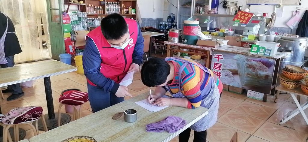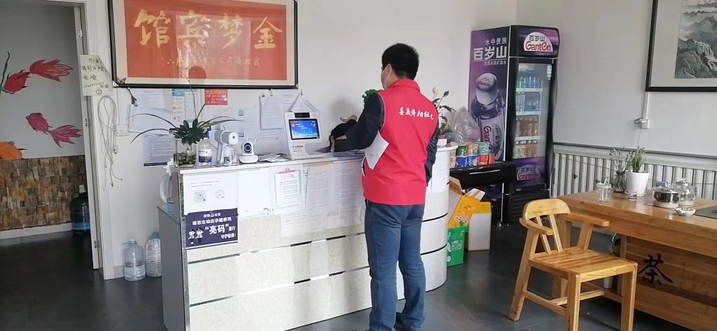 落实防疫措施,筑牢疫情防控线。检查过程中,社工协助店铺工作人员对店铺进行再次消杀。叮嘱商家严格管理,就餐人员进入扫描场所码、测量体温,同时还要控制好就餐人数,原本4人的卡座只允许2位顾客就餐,严格落实各项防疫措施,保障居民安全就餐。