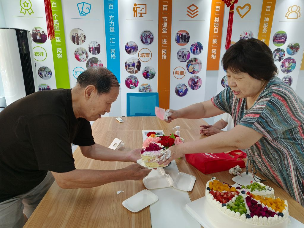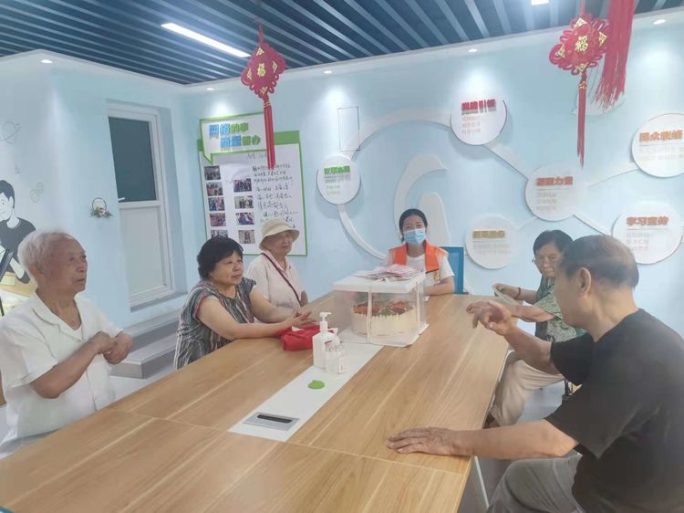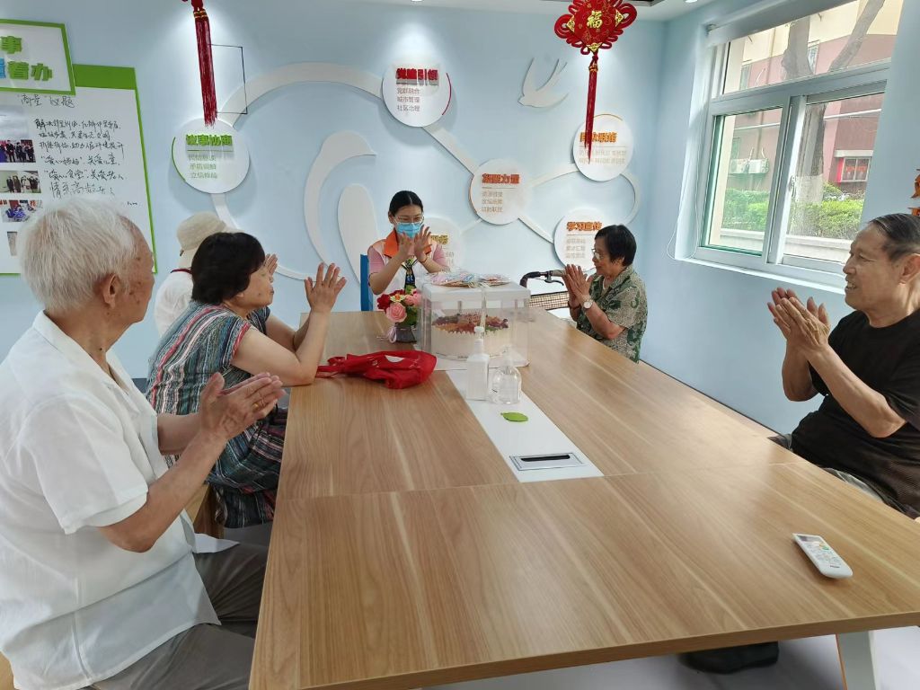 2022年8月8日下午,“燕守护”空巢老人支持小组迎来尾声,第五节小组活动“同欢乐”在网格E站如期展开。本节活动社工结合小组发展阶段,特意设置了集体生日会环节,以此为空巢老人提供情感支持,让老人感受温暖与欢乐,也使小组成员愉快的度过小组的最后阶段。