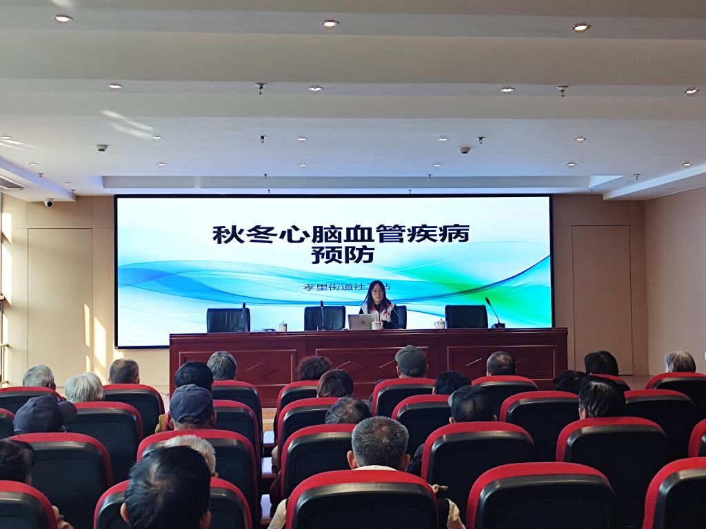 秋冬季节,天气变得干燥,随着气温走低,冷空气侵袭人体易引起血黏度增高、血管收缩、痉挛,令这一时节成为心脑血管疾病的高发季节。为提高辖区失独老人对心脑血管疾病的预防治疗意识,孝里街道社工站在党群服务中心开展“秋冬心脑血管疾病预防”专题讲座。