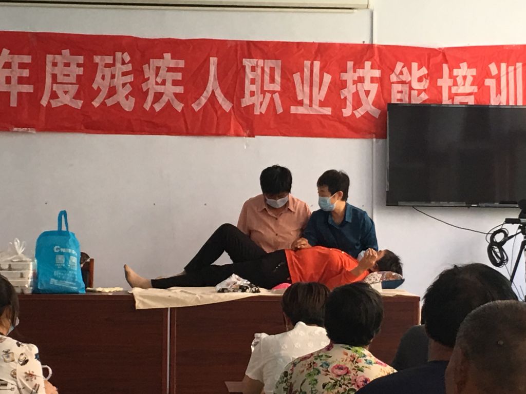 培训过程中,技术老师深入浅出地向大家讲解了残疾人按摩、以及残疾人护理和残疾人用品的使用方法等知识。并通过交流互动、模拟示范、实际操作等多种方式进行教学,使残疾人进一步掌握所学知识。