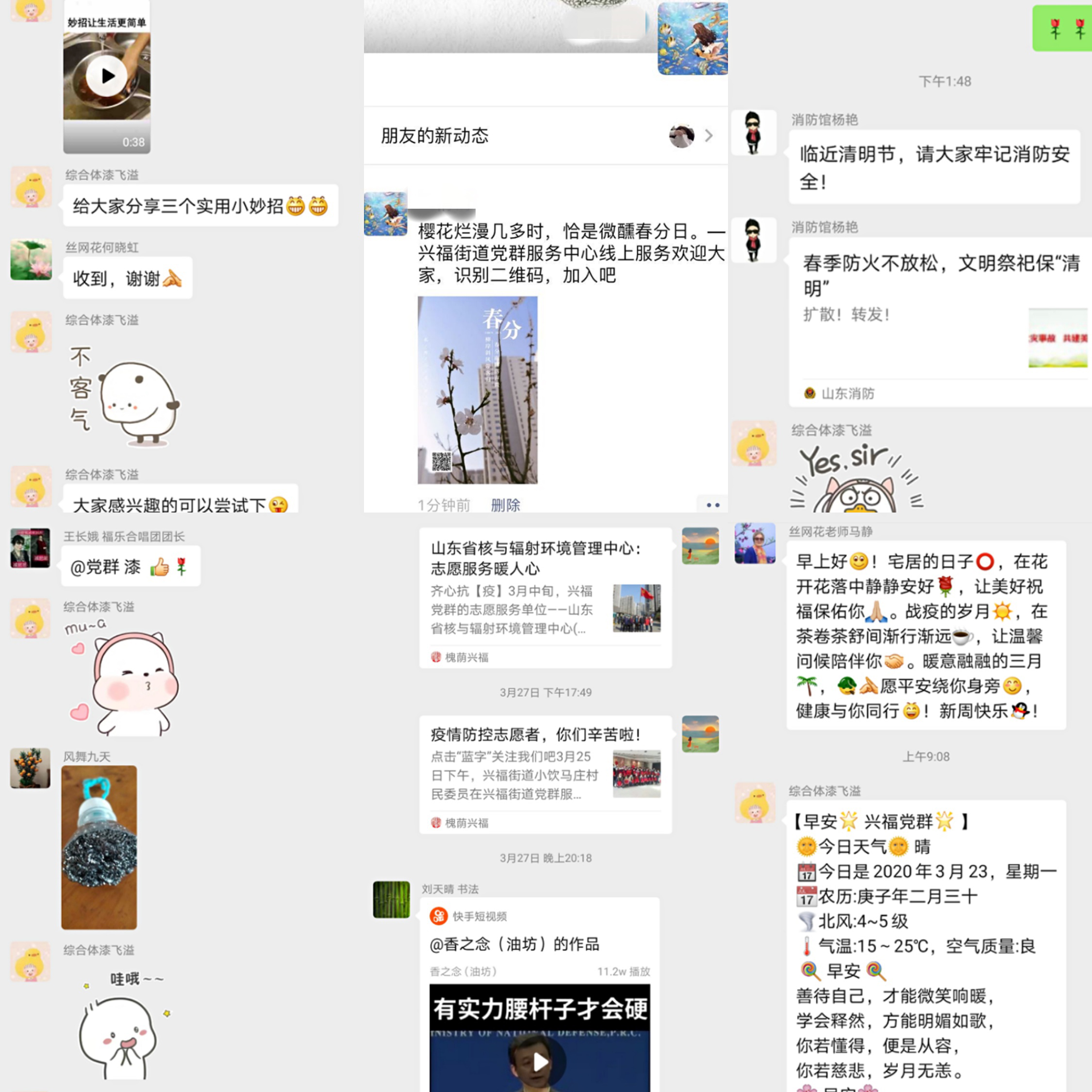据了解,兴福党群线上服务共分为三大部分:一是通过制作分享“日签”等方式,提醒居民不忘传统民俗,共享节庆文化;二是推出“兴福信息库”,随时随地分享辖区政策信息;三是启动“每日生活小贴士”,与居民分享生活实用常识。疫情期间,居民还通过录制视频、画画、唱歌等方式,为此次战“疫”负重前行的各行各业最美“逆行者”加油。