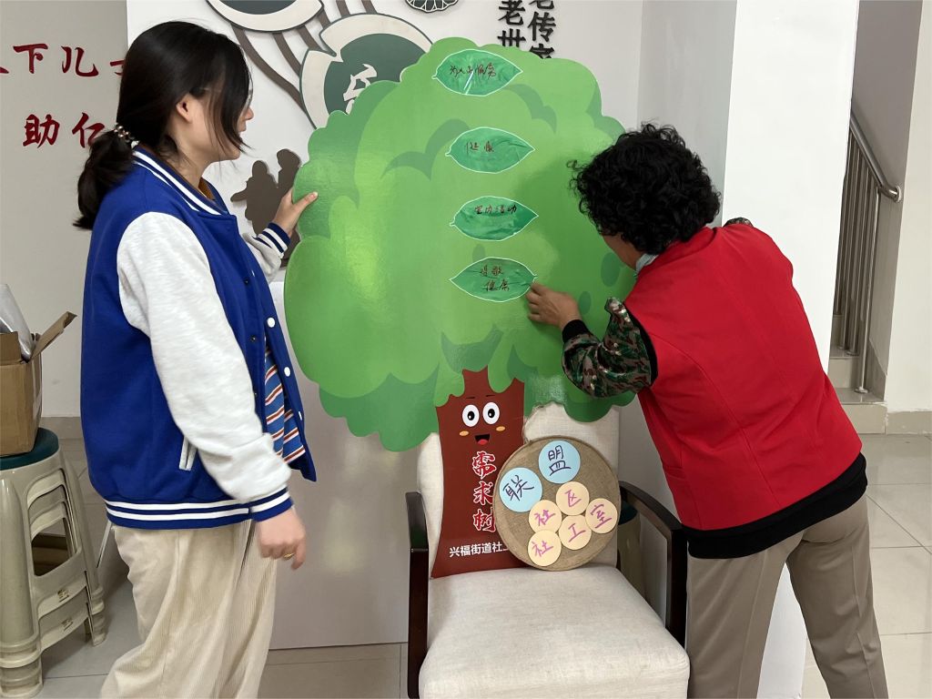 首先,社工采用“社区需求树”与居民进行互动性需求调研,居民在社区需求树中张贴需求最多的为“健康”,其中包括身心健康两方面;第二位则是不同种类的文娱性活动,其中包括手工、歌舞等。随后,社工通过半结构化访谈,对困境人群需求进行深入的理解和分析。困境人群自身是解决问题的关键,他们不仅是服务的接受者,也应该是服务的参与者和决策者。因此,在需求调研过程中,社工充分尊重服务对象的主体地位,让他们参与到调研过程中,让他们发声,让他们为自己的需求主张。