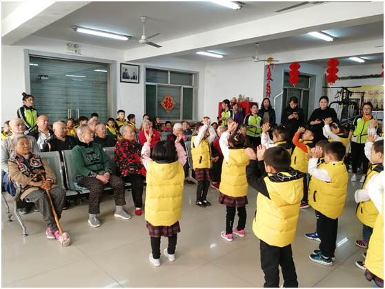 本次活动项目组社工带领儿童志愿者们来到了营市西街康乐老年公寓,为居住在老年公寓的老人们送去一份节日的关怀。孩子们一到,老年公寓里就响起“爷爷好!”“奶奶好!”的问候声,亲切的称呼让老人们感到无比的激动和温馨。随后孩子们载歌载舞为老人们表演了儿歌朗诵、舞蹈《百家姓》、歌曲、合唱《国家》等精彩节目,赢得了老人们的阵阵掌声……以往宁静悠闲的老年公寓变得温情而又热闹。最后孩子们将精心准备的手工礼品和应季水果送给爷爷奶奶们,并合影留念。
