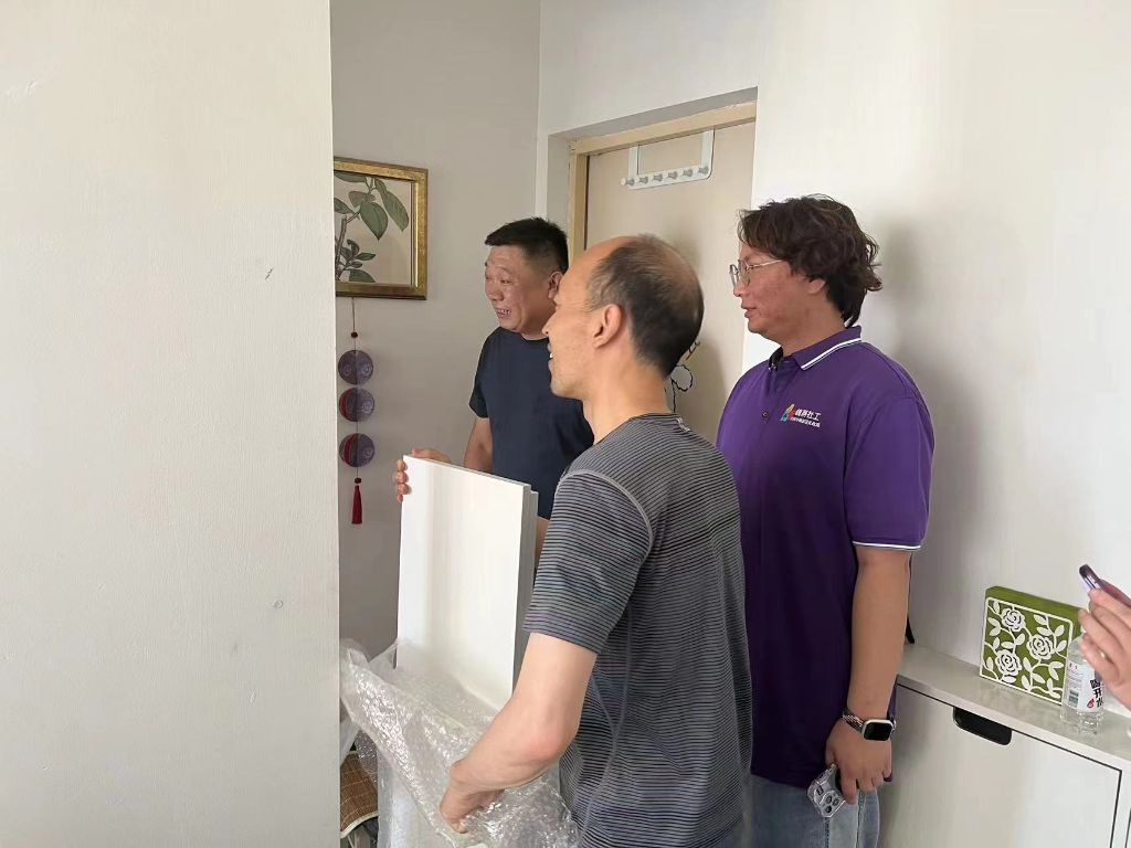 2023年8月3日,首批微改造家具制作完成,兴福街道办事处社会事务办公室负责人石宗清、兴福街道社工站、兴福街道社区社会组织联合会、顺安社区居委会代表一行人来到困境家庭中协助进行第一次家庭微改造。打扫卫生、归置物品、搬运家具,随着众人齐心合作,改造成果渐渐显露。“谢谢叔叔阿姨们,我终于有自己的书桌了!”,来自低保单亲家庭的成成(化名)露出了甜甜的笑容。过去她的学习、生活空间异常狭窄,学习用的书籍因为无处存放只能堆放在床缝间,但是家里没有额外的费用给成成配置适合的书柜,这成了成成的一个心愿。如今在山东省乡村振兴基金会顺安社区基金的支持下,成成能拥有一个舒适的学习、生活空间。