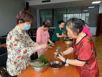 活动伊始,社工带领居民们进行了“笑口常开”“大西瓜、小西瓜”等趣味游戏,让活动现场瞬间热闹了起来。随后,社工与居民一同合作包粽子,在社工的引导下,大家在包粽子过程中回忆曾经艰苦的日子,忆苦思甜,从内心深处感恩党和国家带给人民的幸福生活,同时在包完粽子后,引导居民将爱心传递下去,同社工一起去社区向孤寡老人送温暖,带给他们节日的问候。