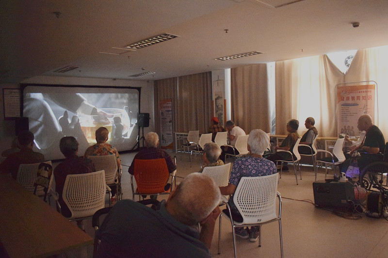 在电影放映前,社工逐一通知了喜爱看电影的老人。在电影播放到中国在巴黎和会上全面失败的桥段时,全国各地学生为守卫山东而街头游行,举国震动,“爱国无罪”、“革命万岁”的口号不仅响彻了那个时代,也震撼了观影的每一位老人。一位坐在轮椅上的爷爷无声的举起手握紧拳头,几位奶奶悄悄低头擦去眼角的泪珠。两个多小时的电影,老人们看的屏息凝神、无比投入,老年大学内听不到一点除电影之外的声音。
