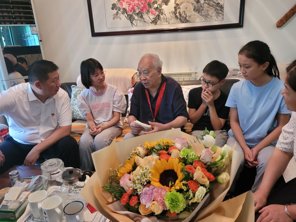 走访中,“老兵把子肉”的陈经理激动的说:“我是有情怀的,我也是退役军人,此时此刻不能表达我的心情,让我给老首长敬个礼吧!”随后,孩子们纷纷上前给爷爷献上节日的鲜花和自己准备的礼物。
