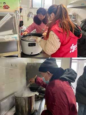长期以来美里湖街道社会工作站熠星频道以挖掘志愿者,发扬志愿精神为服务方向。恰逢腊八节,社工带领志愿者张福平、白永红早早就来到北王村幸福苑忙碌起来,“咱们赶紧做,好让他们早点喝上,今天下着雪喝个腊八粥也暖和”志愿者说道。经过两个小时的忙碌,一碗碗热腾腾的腊八粥就新鲜出炉了。