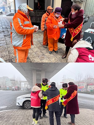 红马甲志愿者们将一杯杯暖和和的粥与浓浓的关怀之情传递给了在凛冽的寒风中仍然坚守岗位,巡逻执勤的交警;风雪中依然奋战在城市美容第一线,为大家创造优美舒适环境,身先力行的环卫工人。志愿者看到他们的辛勤工作都感慨以后更要呼吁身边人遵守交通法规、爱护城市环境。志愿者还与社工一起为辖区弱势群体入户送去热粥,“太感谢了,这么冷的天还专门给我们送腊八粥”,浓浓的粥香,传递出“奉献、友爱、互助、进步”的志愿精神。