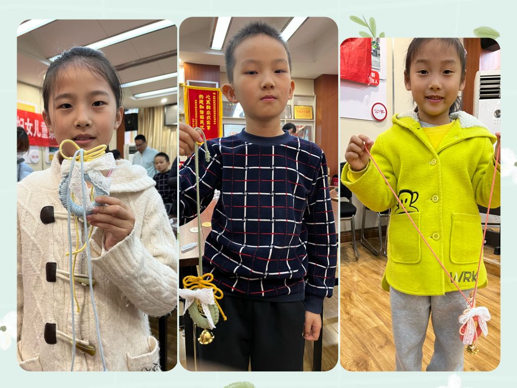 在社工们的指导下,大家都很用心地完成着作品,不一会儿,一个个代表美好祝愿的祈福小挂件就“闪亮登场”了,孩子们看着自己亲手完成的作品脸上洋溢着愉悦的笑容,大家互相称赞,互送祝福。