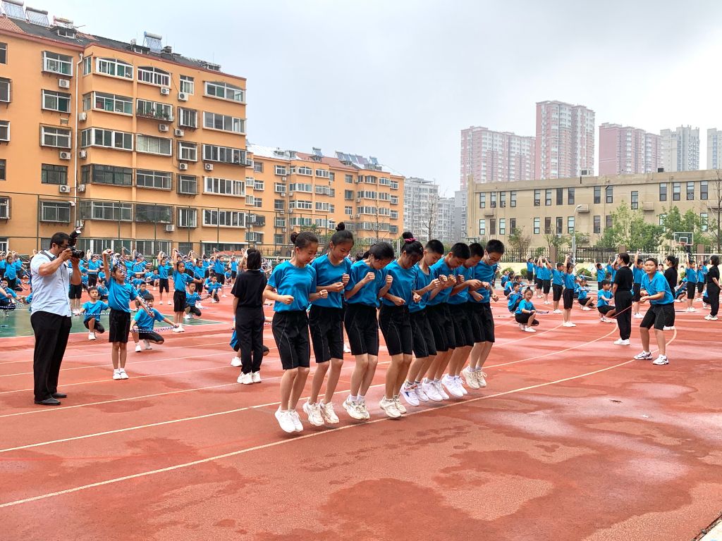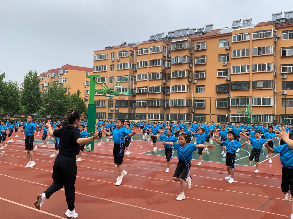 活动首先展示了济南市历城区北全福小学“一生一案 勤行至美 强国有我”阳光体育大课间活动,学校注重常规落实与“一校一品”特色相结合的发展策略,设计了多元化大课间项目,将时下流行的“龙拳”、趣味跳绳、拉伸等项目纳入大课间操中,打造具有体育特色品牌项目的大课间活动。学生身着整齐划一的服装,个个充满朝气、焕发活力,营造了阳光运动、健康快乐的浓厚氛围,展示了积极进取、乐观向上的阳光体育精神风貌。