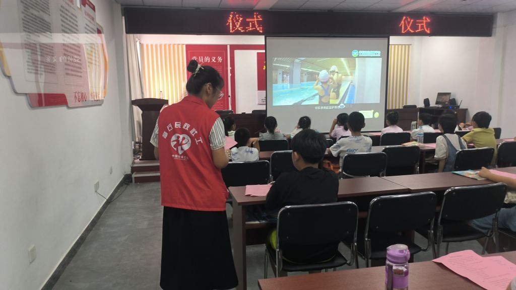观看宣传视频,强化安全意识。社工们联合志愿者、网格员组织儿童观看《学校安金教育平台》发布的2024年中小学生预防溺水安全教育警示片。该警示片通过真实案例的再现,生动地展示了溺水的主要原因及预防措施。同时,还包含了对溺水事故的救援方法、自救技巧的普及。
