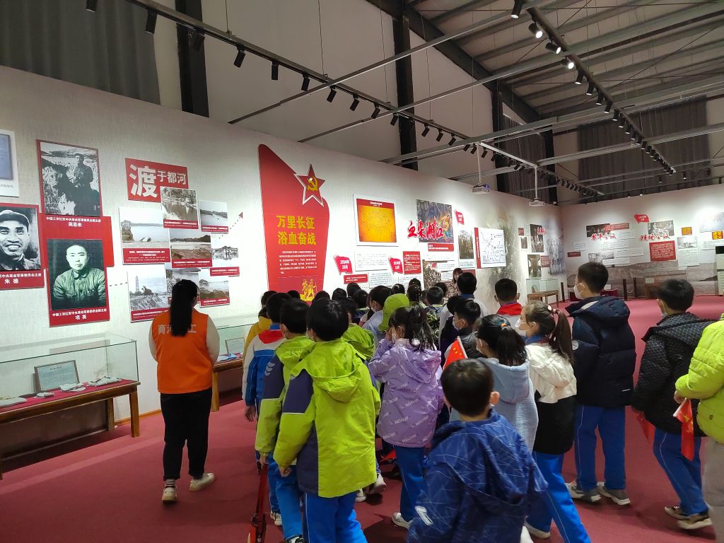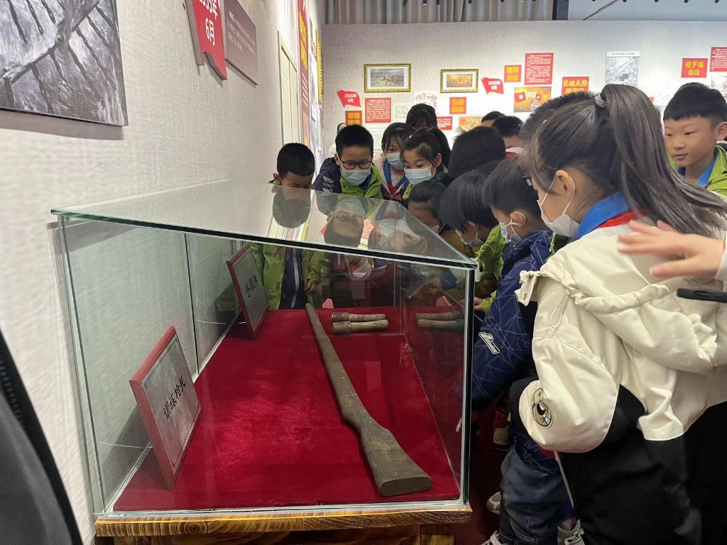 在参观过程中,社工带领孩子们跟随讲解员的脚步,参观了党性教育基地的展厅。大家听着讲解员倾情讲述党的奋斗历史,共同回顾党的百年奋斗历程和共产党人浴血奋战、攻坚克难的峥嵘岁月,看着展厅内的蓑衣、军用电话、军衣军服、草鞋以及步枪等抗日物品,孩子们追寻着先烈足迹,接受着红色文化洗礼,深刻感受家乡在党领导下的蓬勃发展。
