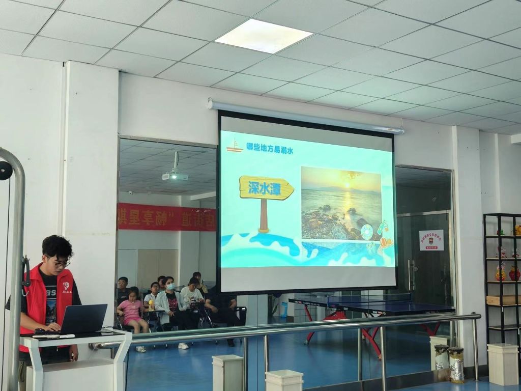 活动开始,社工播放了准备的防溺水视频,青少年看到视频中的受害者因缺乏安全防护意识,从而失去了宝贵的生命,深刻认识到生命是如此的脆弱。随后社工通过PPT的方式,向孩子们普及游泳安全要点、防溺水知识以及如何自救等知识,并教授孩子们防溺水手势舞,让孩子们在娱乐中增强防溺水安全防范意识,做到远离水域,未经家长允许坚决不去不明水域游泳戏水,不去水深危险地段游玩打闹。青少年认真听讲学习了预防溺水的注意事项、发生溺水如何自救等方法,同时对于社工提出的小问题,青少年们踊跃的举手回答。活动最后,社区志愿者为大家讲解了辖区内土河、杨家河等水域的危险性。通过真实案例的剖析,志愿者们让孩子们深刻认识到溺水的危害性和预防溺水的重要性。