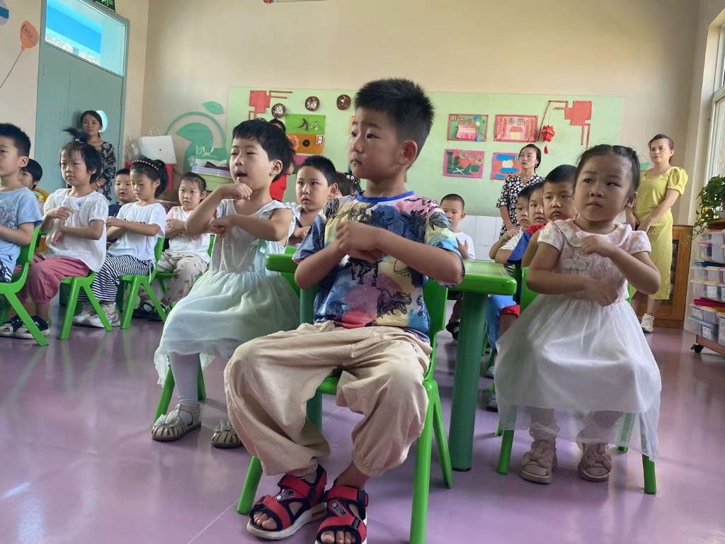 随着音乐响起,社工带领孩子们共同做手势舞蹈《红山果》、《勇气大爆发》孩子们认真学习,跟随社工的手势一起摆动,在完成两个手势舞蹈后,孩子们变得不再拘谨,与社工渐渐熟悉起来。