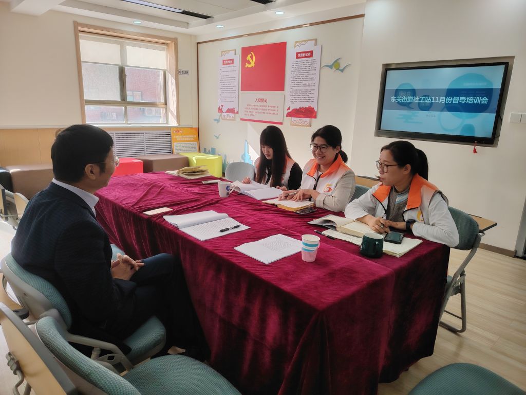 为修改、完善2023-2024年度项目任务书逻辑框架,进一步梳理社工站服务思路,为服务对象提供更加适切、有效的专业服务,推动社工站三年建设发展取得扎实成效,11月6日,东关街道社工站召开11月份专家督导会,聘请济南大学社会工作系教授、济南市社会工作督导专家库成员乔世东老师担任督导,社工站3名社工接受督导。