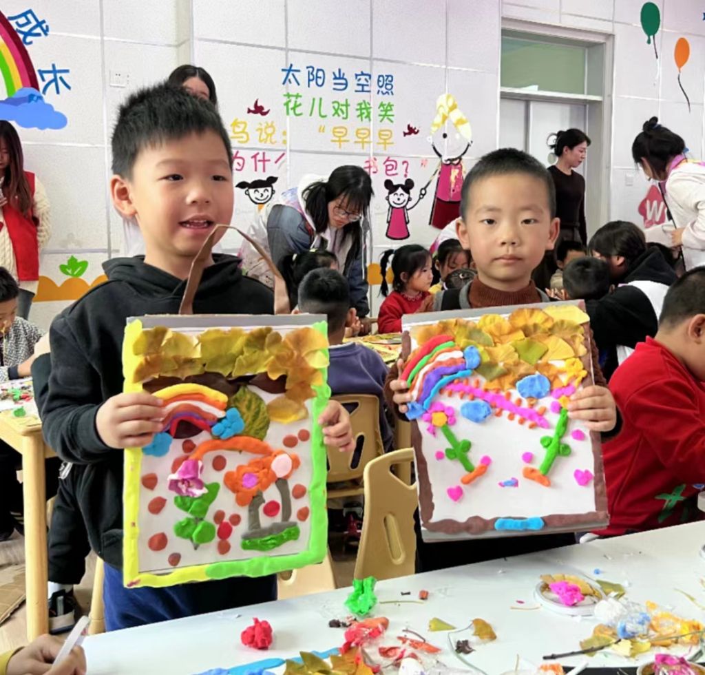 为进一步丰富、深化社工站“未爱童行,助梦成长”儿童青少年服务子项目内容,激发孩子们的想象力和创造力,培养能力,11月16日,唐冶街道社工站联动山东青年政治学院设计艺术学院社区服务部同华夏山青社区在华夏幼儿园开展“拾一片树叶 画一纸童心”共助儿童成长树叶粘贴画活动。