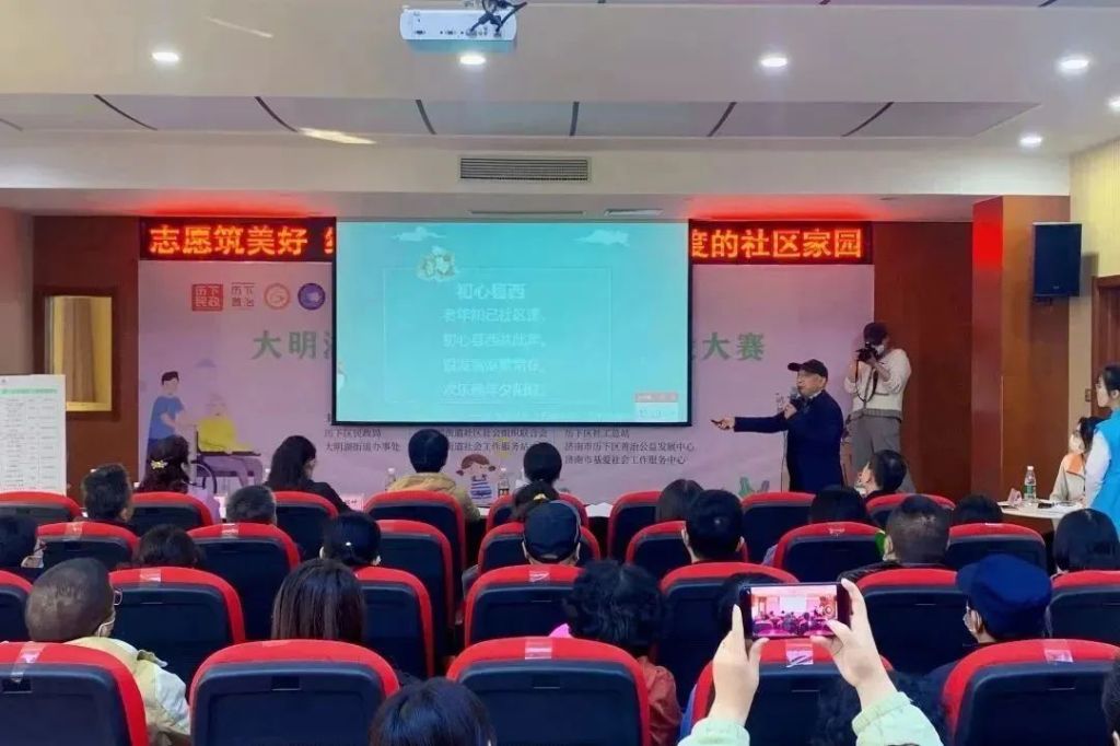 大赛邀请山东大学哲学与社会发展学院教授黄春蕾,大明湖街道社会事务科科长高丽华,济南市历下区善治公益发展中心主任孙璐璐,济南市基爱社会工作服务中心总干事李明叶4位专家担任评委,同时还有来自6个社区的18名居民骨干担任大众评审。本次活动由大明湖街道社区社会组织联合会、街道社工站、舜井社工室承办,社工站社工孙佳琪主持。