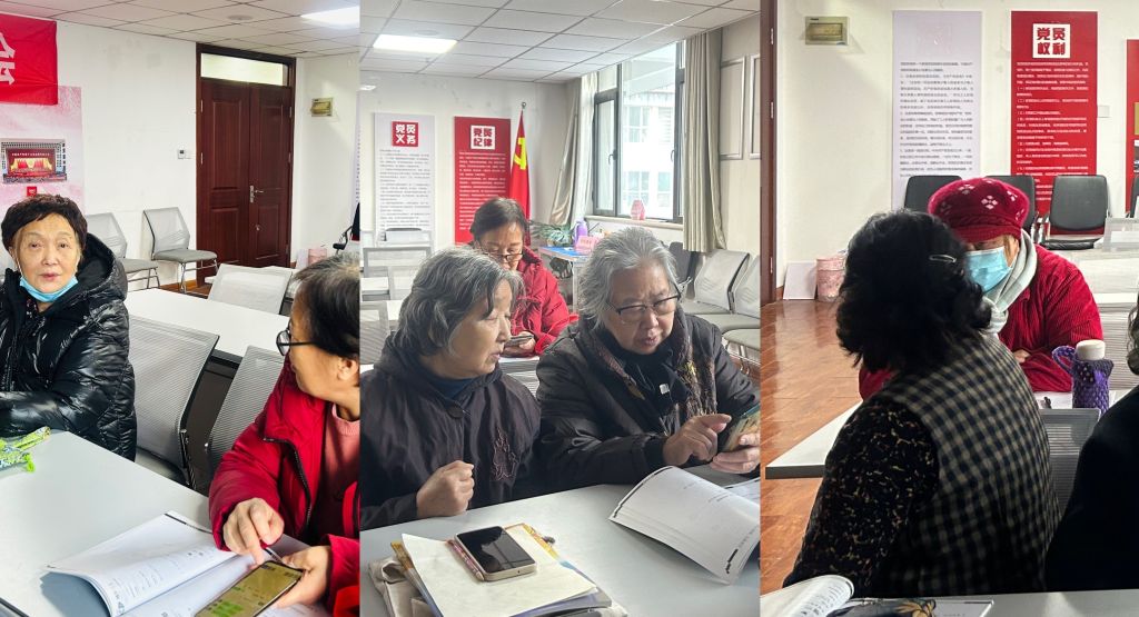 在小组欢乐的气氛中,社工将组员的注意力转移至预防电信诈骗中。网络是把双刃剑,社工在本次智慧助老支持小组中教授了组员线上就医挂号、抖音拍摄、网络购物等手机功能,在提高组员消除“数字鸿沟”能力的同时也要及时提醒老年人杜绝电信诈骗问题。为了提升老年人防诈骗意识,守好自己的“钱袋子”,借助本次小组活动契机,社工为组员普及典型和新型电信诈骗知识,并通过真实案例讲解使组员更直观了解预防电信诈骗的重要性和急迫性。本节小组已经处于小组成熟阶段,社工促使组员通过自身经验分享、反诈知识交流等巩固课堂知识,积累反诈经验。在本节小组活动结束时,社工还为组员总结了简单易懂的防诈骗口诀,帮助组员更好地预防电信诈骗。