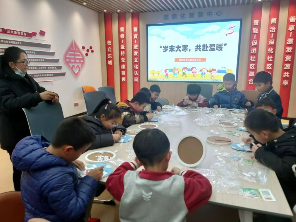 二十四节气,始于立春,终于大寒,周而复始。大寒是二十四节气中最后一个节气,是一年中最为寒冷的时期之一,标志着冬季的结束和新年的开始。为弘扬中华优秀传统文化,丰富辖区青少年儿童生活,提高其对二十四节气的认识。1月20日,历城区郭店街道社工站联合东城名郡社区开展“知节气 迎大寒”圆盘画diy手工制作活动。