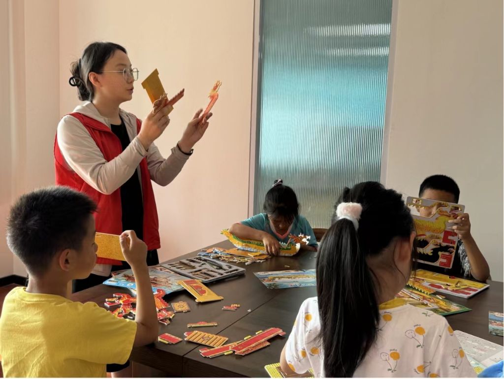 本次活动由叙端午、拼龙舟两个环节组成。活动现场,社工先向大家讲述端午节包粽子、赛龙舟的由来,让孩子们对端午节有一个更加清晰的认知,随后,现场工作人员为孩子们发放手工材料包,详细讲解制作龙舟的步骤和需要注意的事项。拿到材料包后,孩子们和家长按照图纸将眼睛、龙须、龙鳞等零件粘贴到龙舟上做装饰,用多余材料给龙舟进行改造,经过孩子们和家长的装饰,一个个龙舟成品呈现在大家眼前。“很开心,既动脑又动手,还能通过制作龙舟了解更多的中国传统文化。”参加的小朋友拿着自己一个多小时做成的成品,高兴地说道。