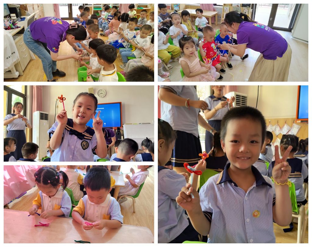 孩子们跟着社工阿姨们一起制作小雏菊