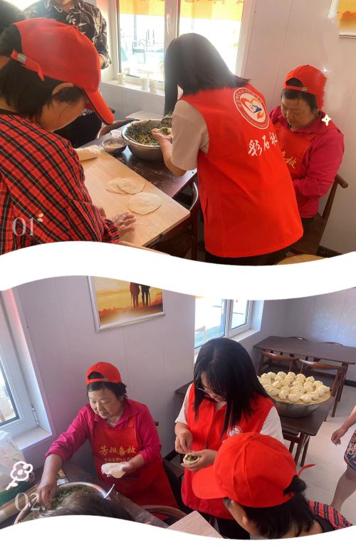 温暖从“心”出发,社工运用“1+1惠彩服务包”为居民测量血压、血糖,耐心解答群众的各种问题,帮助老人及时了解自己的健康情况。另一边,社工与志愿者们围在一起为老人准备午餐,“我包的这个包子好看”、“这个包露馅了”大家边干边聊,空气中洋溢着欢声笑语。