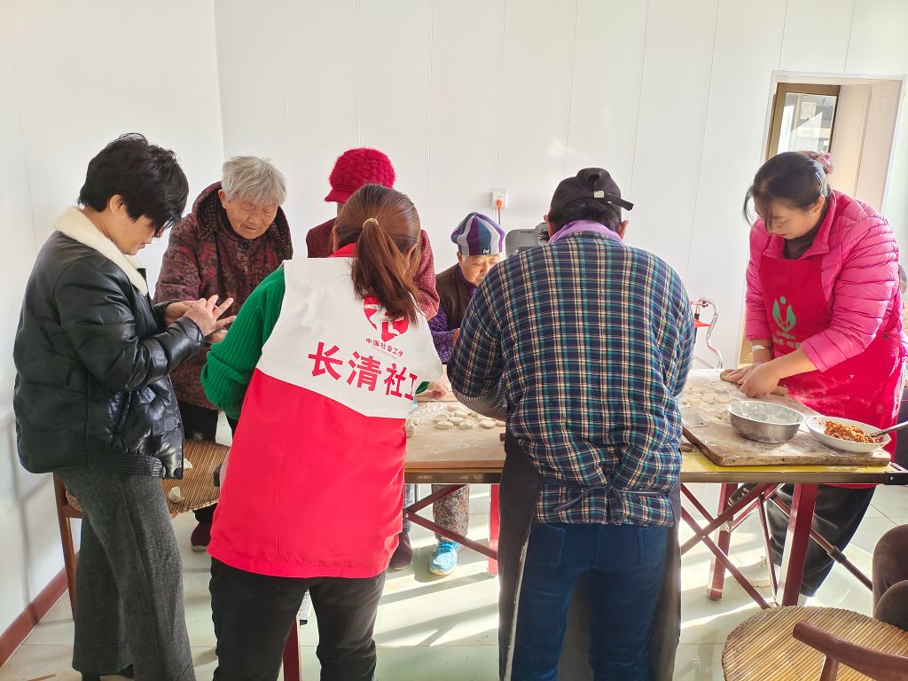 长清区五峰山街道西石村村支部书记在10月份向社工站发出邀请,希望社工站可以链接志愿者来为老年人开展包水饺、义剪活动。社工站了解到这一需求后,积极链接志愿者们,于11月23日,在西石村开展“五社联动聚合力 社工服务暖夕阳”包水饺活动。