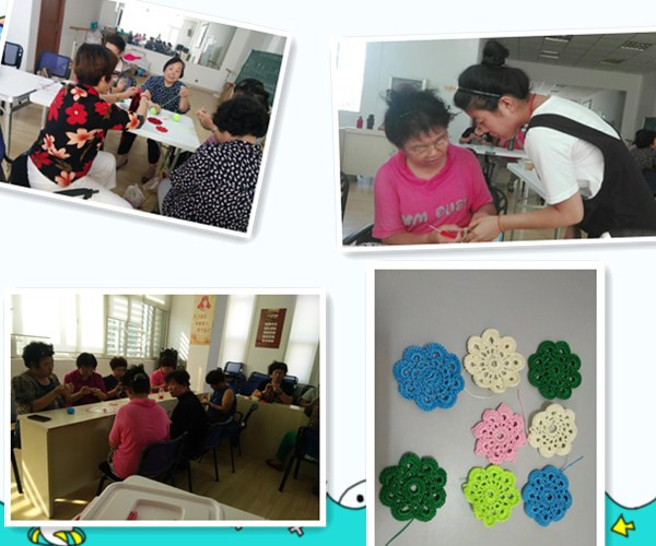 在学习的过程中,大家有说有笑,气氛非常融洽。活动最后,组员拿着自己钩成的作品都笑开了花,都说:真像回到年轻的时候啊,那时候经常钩这些东西。现在再聚在一起钩这些,真是太开心了,谢谢你们了。