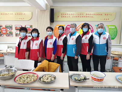 3月10日,“幸福阿姨”们早早地来到社区,“过年好,过年好……”刚进门宋秀珍老师就送来迟到的节日祝福,疫情隔离并未隔爱,“幸福阿姨”队长宋秀珍、党员合唱团队长王家春、社区自驾游“明星”杨胜叶、少儿民乐团老师朱玫、荣登志愿英雄榜的冷露春、热心志愿者亓登宝、王永香,他们是社区的老居民,是社区志愿者骨干,更是一居最亲的人,他们用行动为社区工作人员加油鼓气,分工合作为包水饺做好准备工作,摘菜、洗菜、剁馅……每一个步骤他们都精心准备着,他们的行动让我们更加期盼一居居民欢聚一堂、载歌载舞的一天赶快到来。