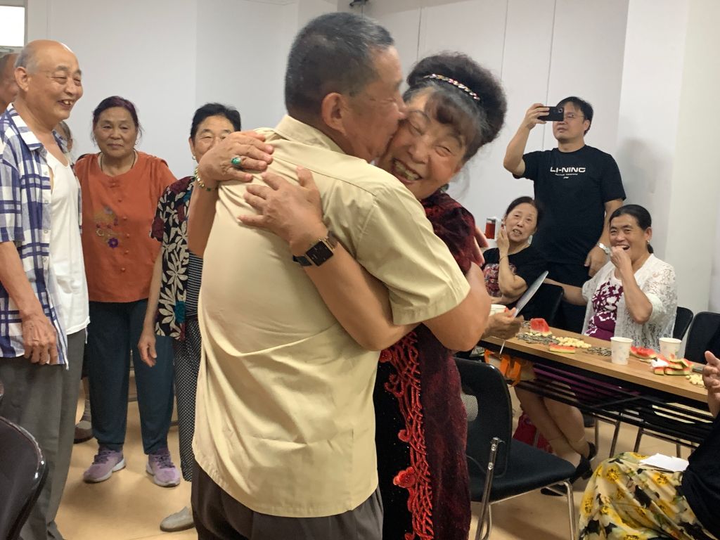 活动第一项节目,邀请每一对夫妇上台,手拉着手大声表达爱意。“我爱你,老伴!希望咱们可以再走几十年!”每一对老人都相互诉说着爱意,大家温情的笑声充斥着整个活动现场。
